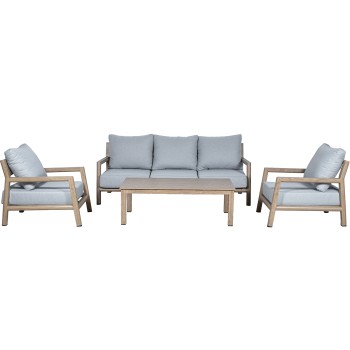 Set 2 Fauteuils+ Sofa 3 Places+ Table À Thé, Aluminium Et Osier, Sofa:190x85x70cm Fauteil:74x85x70cm Table:120x70x39cm